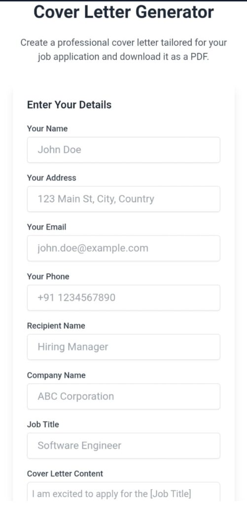 A Cover Letter Generator is the perfect solution for job seekers who want to create professional cover letters without the stress of starting from scratch. With customizable templates, time-saving features, and error-free writing, it helps you focus on what matters most—landing your dream job.